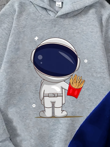 مجموعة من 3 قطع من هودي بطابع فضائي للأولاد - مزيج من البوليستر والإيلاستين، بلوفرات كاجوال بغطاء رأس بطبعة رائد فضاء، بنمط هندسي، قابلة للتمدد قليلاً، مجموعة خريف/شتاء، تفاصيل زينة، مقاس عادي للأعمار من 12 عامًا فما دون