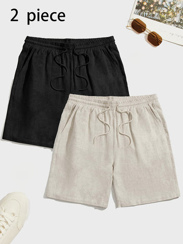شورت رجالي كاجوال برباط، لون كاكي أزرق، قطعتان