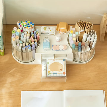 حامل أقلام دوار المادة: بلاستيك متين الألوان: أبيض، أسود، رمادي المقاس: 10 سم × 12 سم الوزن: 150 جرام النمط: منظم مكتب عصري الاستخدام: المكتب، الدراسة، المنزل الميزات: دوران 360 درجة، حجرات متعددة، يحافظ على المكتب مرتبًا.