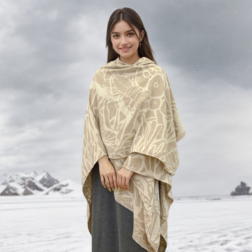 Women's Bohemian Brown & Golden Marine Print Shawl Wrap - Oversized Relaxed Fit with Fringed Tassels, Lightweight Breathable Cape for Beach, Casual & Formal Outfits - Wrinkle-Resistant & Easy Care (Hand Wash/Dry Clean) - Boho Style Statement Piece in Eart
